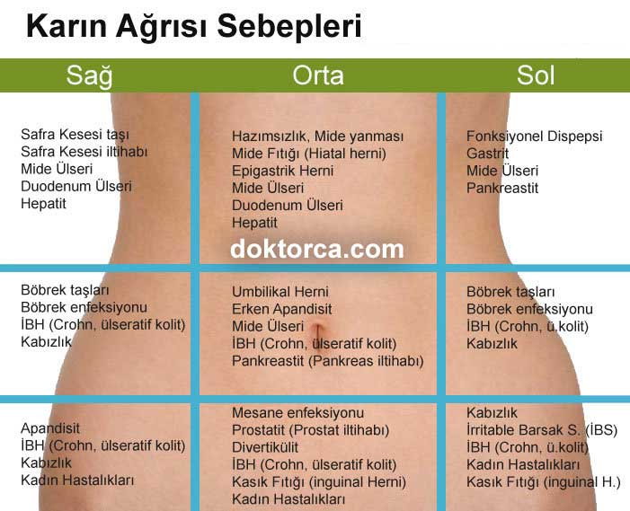 Karın ağrısının yerine göre karın ağrısı nedenleri